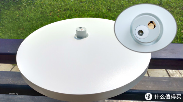 底座上方为凸起的电源接头,与立杆相连;背面为产品铭牌与固定螺栓孔,侧面为8字头电源线接口,为米家直流变频落地扇1X提供电力。底座底部的螺孔是连接立杆的关键,通过随机附带的扳手将其固定,方可万无一失。
