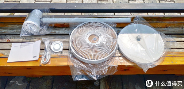 每一个部件都由透明塑料袋子包装,拆除所有包装后,米家直流变频落地扇1X所有的部件展现在面前,包括:风扇罩、风扇主机与立杆、扇叶、底座、扇叶旋钮、风扇罩旋钮、专用扳手、底座螺丝1颗、风扇罩螺丝1颗、电源线和说明书。产品尺寸为950x343x330毫米,净重2.8公斤,电源线长度为1.6米。