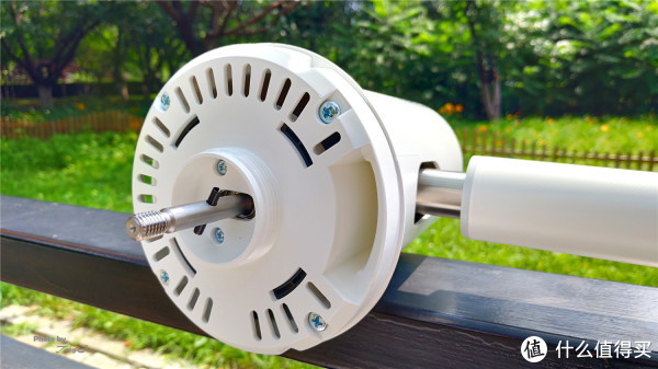 电机部分与立杆同为一体,立杆与底座对凸起可以无缝接合。电机采用的是直流无刷电机,这个无刷电机好呀,知道为什么吗?因为它可以有效地降低噪声,让大家减少风扇噪音侵扰呀,据产品介绍上讲的,最低噪声可以低至26.6分贝。这可是一大福音呀。