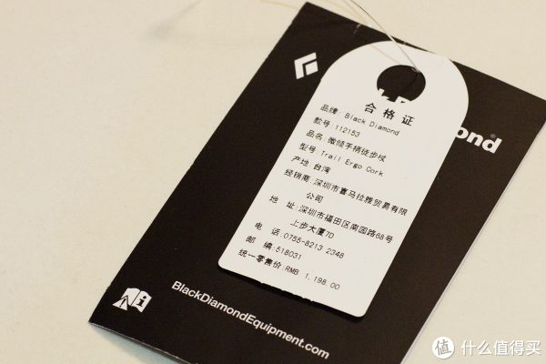 中部是产品标签,Trail Ergo Cork,Trail是BD手杖系列的其中一款,另外两款分别是Alpine和Distance系列。看了一下三款的区别,Trail是入门款,不过也有Pro款的配置会高一些;Distance主打轻便,都是Z型折叠杖;Alpine是高端款,有FlickLock Pro关节锁,碳纤维杆身、软木手柄等技术加持。这个纸标签里夹着一份产品说明书,不过没有中文说明,有点不爽。
