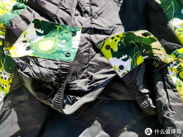 衣服的袖口为松紧带与强力魔术贴的双重设计,魔术贴有着一定的长度,松紧带弹力十足,可以让手腕粗细不同的人群根据自身情况快速调节适合自己的袖口,贴合后可以有效的防止穿着过程中冷风的侵袭。