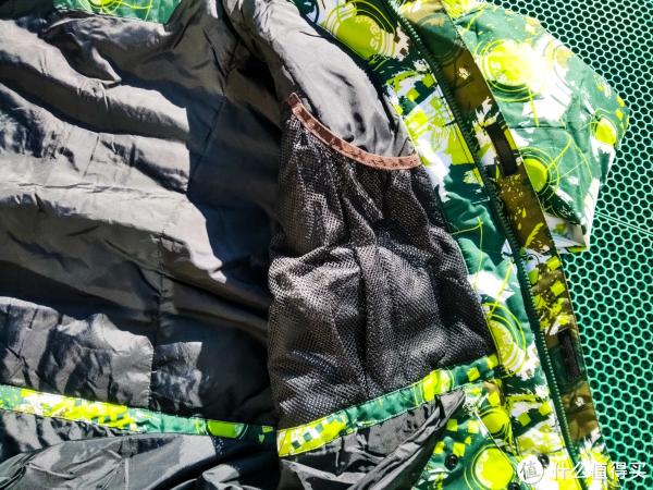 衣服里面左侧设有网袋,可以放置一些贵重物品。衣服的内里材质柔软而亲肤,搭配衣内填充的聚热棉,可以有效的起到防寒效果。