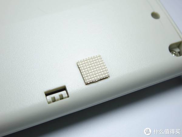 ▲键盘背面下方有二快橡胶防滑垫,坑爹的感觉又来了,橡胶防滑垫明显是手工裁的,裁的歪歪扭扭一看就是醉酒上工啊。