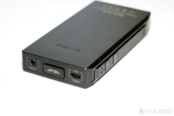 顶部看起来比较复杂,那个3.5mm圆孔不是插耳机的,而是同轴数字输出;带保护盖的是两个TF卡槽;还有一个Micro USB口,可用于充电、复制文件,以及USB DAC功能。