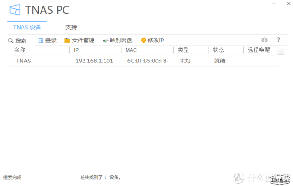 TNAS客户端找寻到我安装的TNAS设备,点击上方登录按键,就可识别我搭建的硬盘。