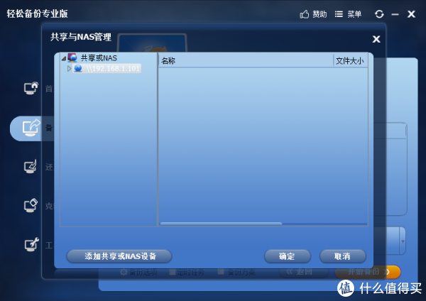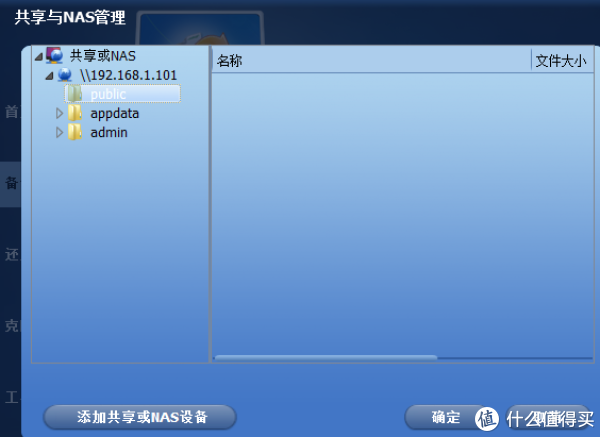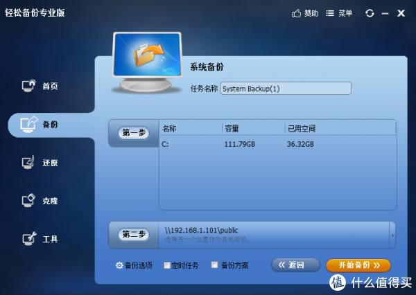 第二步就是备份到铁马威F4-421 NAS,192.168.1.101是它固有的地址,这里需手动输入。