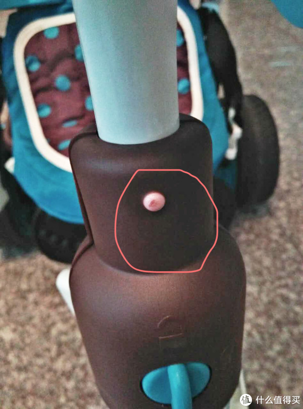 运动版比豪华版就多了这个脚刹,而且推杆手柄不一样,比较好上力,要么男人力气大点推起来不费劲,他妈推了推说还好,没问题。