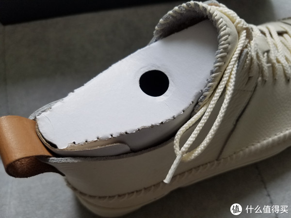整个鞋面是由真皮组成,里面再无任何填充物,去掉鞋撑后鞋面非常柔软,在使穿着变得舒适的同时也导致了另一个问题:支撑性非常差。作为一双休闲鞋定位就是压马路,不能以跑步鞋的姿态来要求它,对于正常足弓来说这应该没有影响,但对于我这样的扁平足来说走姿就非常的不舒适,这个不舒适除了支撑包裹性都差以外还有个原因是来自于鞋垫。