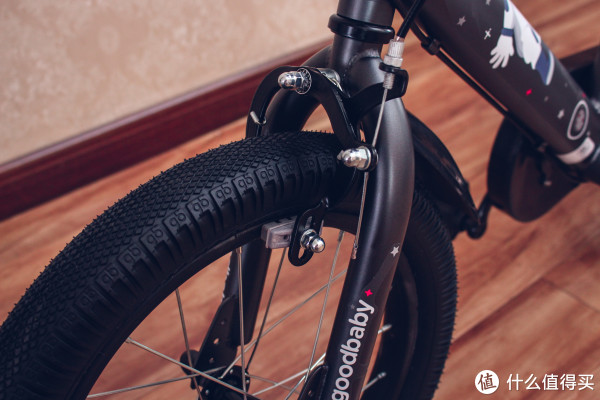 前闸采用的是钳型闸,如果能配到V刹就好了,不过小孩子也没那么高的需求。