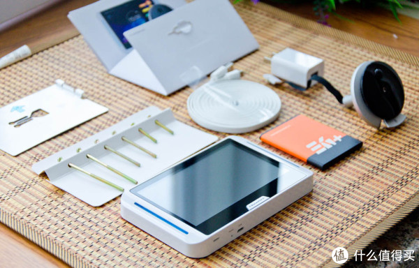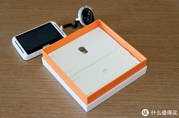 盒子是两层设计,上层是猫头和主机,下层是其它的配件,配件采用了独立包装。盒子的顶盖上贴了一层海绵,可以减少产品在运输过程中的震动,主机上则预先贴了一层膜来保护屏幕。