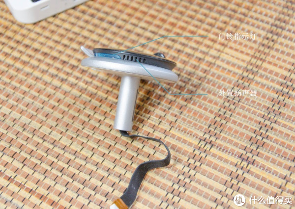 先说说猫头,猫头又是外机,上面有 PIR 红外侦测器、LED红外灯、移动侦测器、三轴加速度器,在夜里也能看清门外的情况,检测到门外有人或物时,会自动记录并推送警报信息。而三项加速度传感器,可以检测开关、关门等动作,一方面可以对这些动作报警,另外一方面也可以实现一些更人性化的,比如检测到开门后就进行天气预报播放,其实这个功能还可以进一步深度开发,主人进门后语音提醒,今天有几个来按门铃的,有几个警报之类。