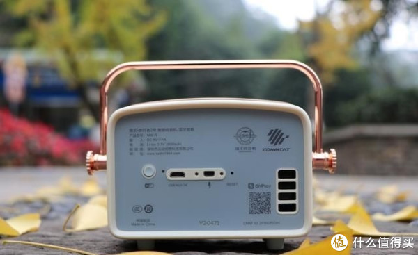 上手的这台猫王旅行者2号为月岩白,在外观上延续猫王经典设计,同时也融入了70年代这个世界对太空的人文情结。机身表面采用汽车烤漆工艺,指尖触感细腻,具备贴心的防指纹效果。在机身两侧设计了铜黄色的金属把手,同时也可以作为支架,可以通过螺丝进行装卸,以满足不同视觉的享受和场景需求。