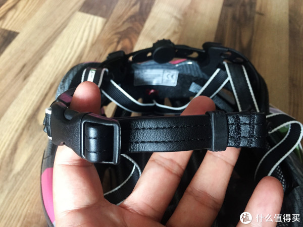 下面我们看一下下颚系带,织物系带比入门盔要宽不少,且与下巴接触的部分改成了皮质的,舒适度确实不错。