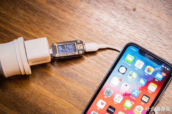 通过测电表的显示,Anker Nano支持 Apple 2.4、QC3.0以及 PD3.0 的充电协议。