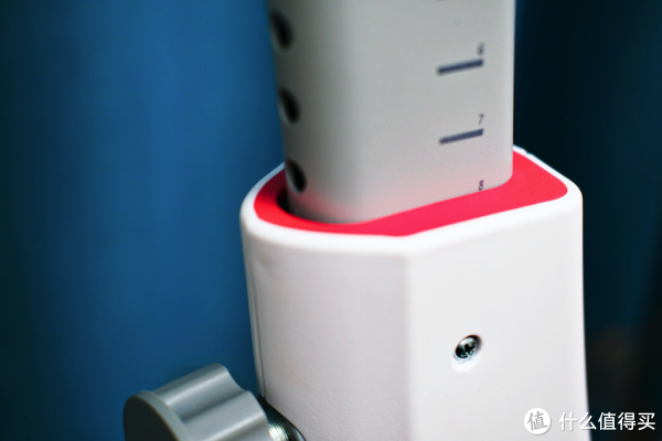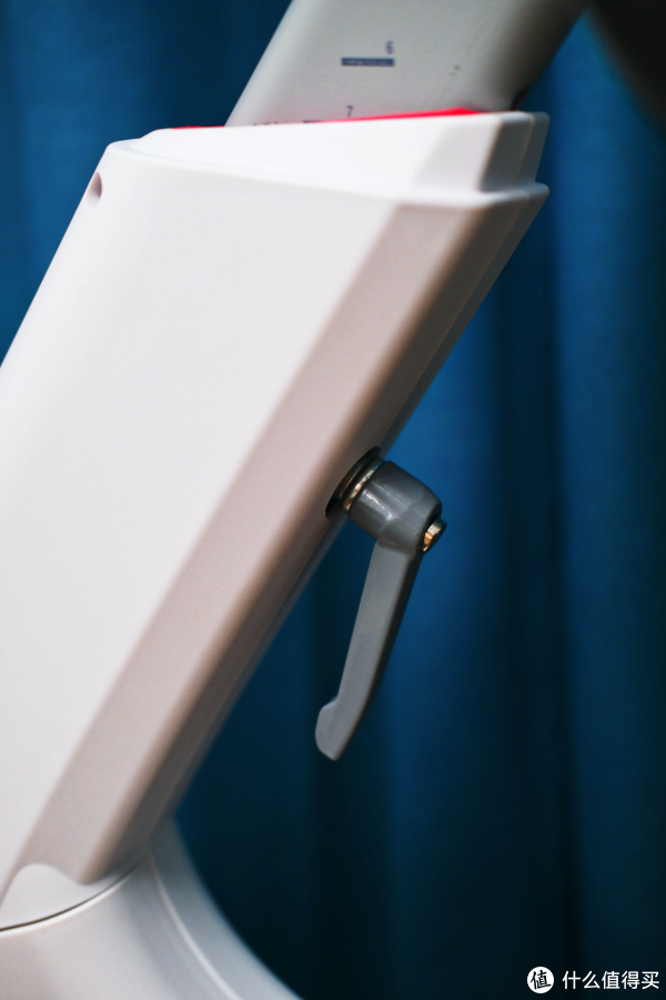 座椅高度调节的刻度清晰,接缝也很贴合。红色的套芯极大地提升了颜值。