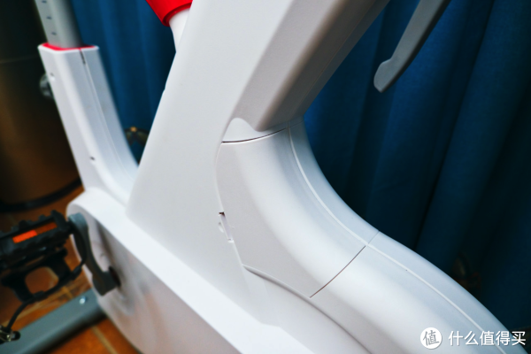单车整体的白色包裹为白色硬塑料,磨砂哑光质感,触感很好,不过白色后期弄脏了肯定免不了经常擦拭。