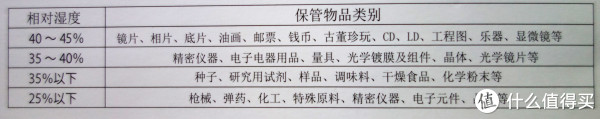 产品说明书给出了不同物品的湿度要求。摄影器材,湿度在35%-45%就可以了。