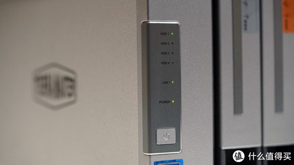 4个硬盘工作灯——硬盘正常工作绿灯亮、读取中绿灯闪烁、红灯为故障及开机自检。