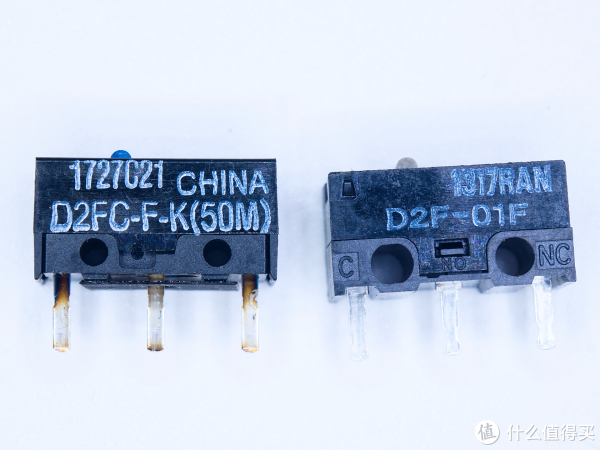 我们可以换的微动就只有使用频率高的左右键。如图,微动上写着欧姆龙,中国产: