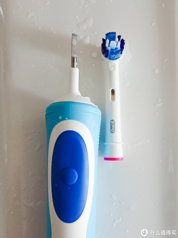 刷完牙后最好能把刷头拆下来清晰一下,毕竟内部的转动轴会有几率残留牙膏泡沫。幸好安装方便,直接拔出来就行了~~就是不知道拆多了会不会变松~