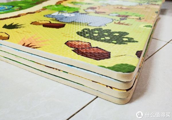 关于材质我不太懂,我只知道好的爬爬垫一看气味二看软硬程度。打开包装没有闻到难闻的塑料气味,合格!我用手捏了一下,软硬适中,不会太硬孩子坐上面不舒服,也不会太软失去了爬爬垫原来隔离地板的作用。