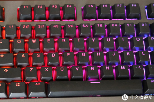 2、黑色PBT材质双色注塑键帽,透光性一般,背光灯和竞品比不够亮。