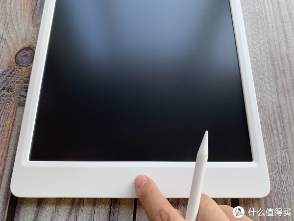 米家液晶下黑板的使用比较简单,液晶面板是压感显示的,有压力就会变成暗绿色,通过手写笔可以在液晶书写区域随意的涂涂画画。