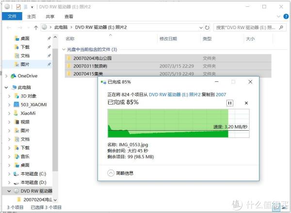 找一张更早的2007年刻录的CD-R试试,读取速度比DVD慢,一开始只有1MB多,后来上升到3MB以上。