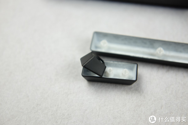 ▲键帽的材质这张图可以看出一点点感觉,亲肤材质的设计,非常细腻的触感。缺点也很明显,容易打油