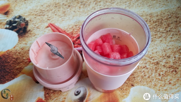 然后开启开关,摇几下杯身,确保西瓜块与刀片接触。