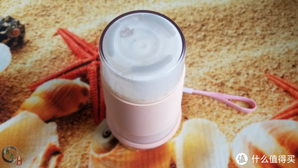 然后开启开关,把杯盖向下放置,产品会自动运行30s后结束。我在使用时发现,刚开始时,最好先把杯盖向下摇一摇,以避免出现刀片无法接触到水果块的问题。