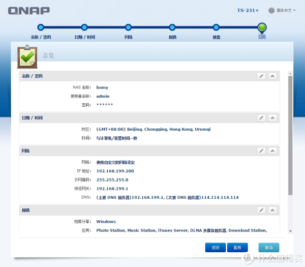 设置完成,选套用之后就重启了。整体设置跟群晖差不多。