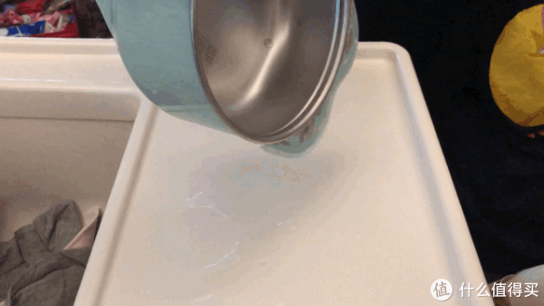 ▼密封性测试。效果不佳,注水口橡皮塞存在滴水现象,侧面碗壁和不锈钢内胆接缝处也有漏水现象。后来楼主盖上注水口的盖子,依然会层层漏出。