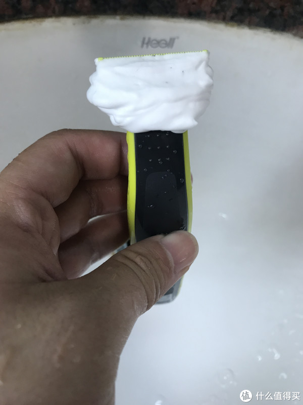 在剃须刀没有水的情况下剃须膏就会是这个样子,如果剃须刀有水然后还用了剃须膏,那剃须膏和水就会两情相悦并一同往你的手臂上私奔,最后滴到到处都是,所以试过一次这种情况之后每次刮胡子前我都会甩干剃须刀上的水。