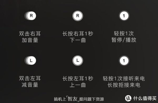 最大的亮点之一是它采用了智能触控技术,轻触即可控制耳机,很多无线蓝牙耳机操控性非常不好,只能直接操作手机,智能触控可以说是相当便捷,以下是这款耳机触控的操作方式,基本听音乐及接听来电的操作都能一触实现,触控时会有亮灯交互反馈,要注意的是它很容易出现误操作,有些操作刚使用会不习惯觉得有些复杂,比如无意摸耳机或头发时触到就会发生触控,当然这是触控功能难免的,使用习惯后就不会了。