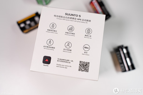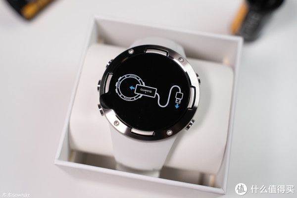 包装比我预想的要小很多,纯白的底色上面是大大的SUUNTO 5标识和腕表的照片,这样看起来还挺漂亮,完全没有传统运动表那种笨重的感觉,也难怪媳妇一眼就看中了这款。
