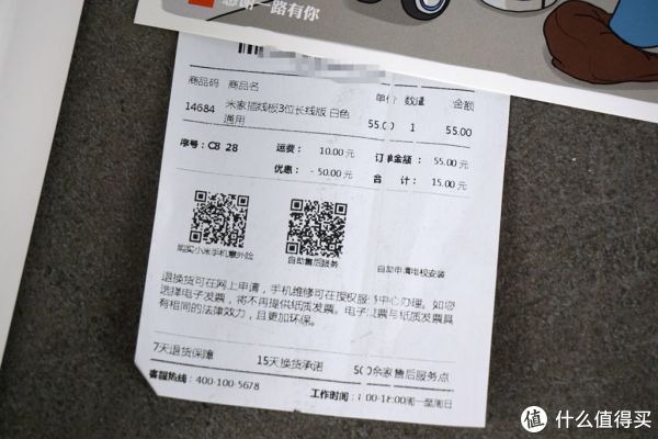 小票显示商品55元,运费10元,优惠50元,实付15元~~