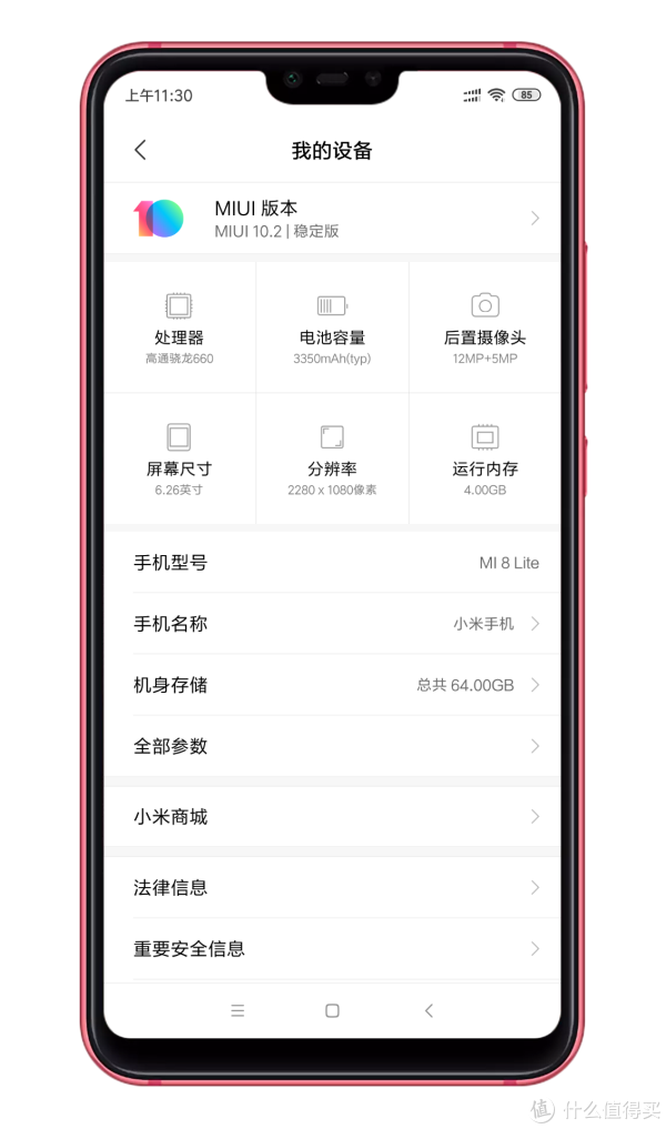 再好的硬件也需要软件来调用,小米8 青春版运行基于安卓8.1深度定制MIUI 10系统,以全面屏为核心设计的新系统,与众不同的全面屏手势也更加好用,从系统底层进行了省电优化,使得配备3350mAh电池的小米8 青春版的续航可以保持在中度使用情况下,一天一冲的水平。