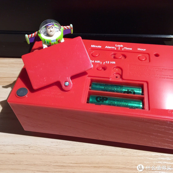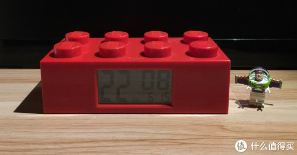 将巴斯光年放在旁边做个尺寸对比,可以看出这款闹钟挺小巧的