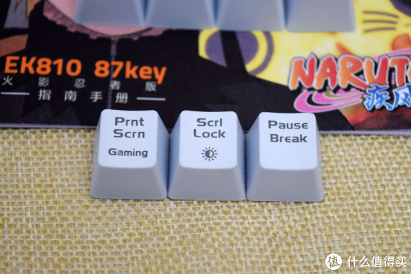 通体火影人物头像,左下角EK810 87Key 键盘名称标志只占据包装盒的一小部分,纯在感极弱,就算看到了也不会明晓这是个键盘。