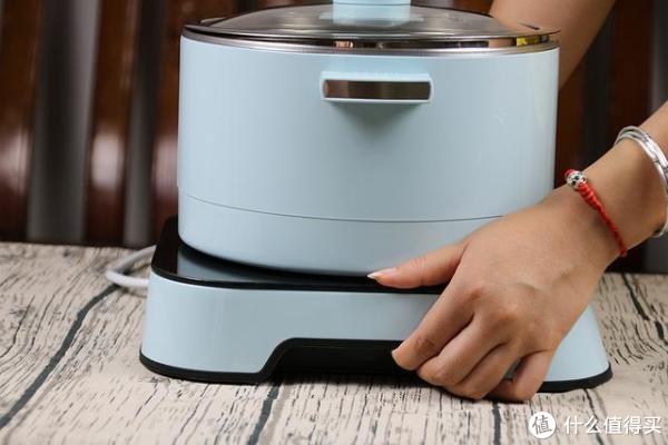臻米升降电火锅采用的是底座与锅体分离式的设计,可以看到它的体积也不是很大,用户使用的时候把锅体放置在底座上后接上电源即可,而清洁时直接取下锅体,并且它的防护也是做的比较好,直接可以拿水龙头冲洗。