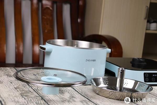 臻米电火锅外观展示(底座|锅体|锅盖|提篮|内胆)
