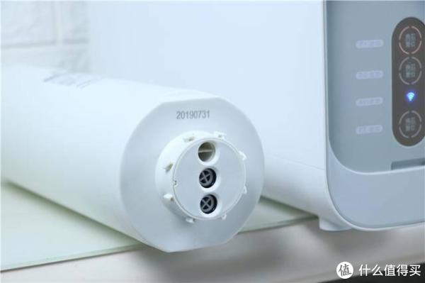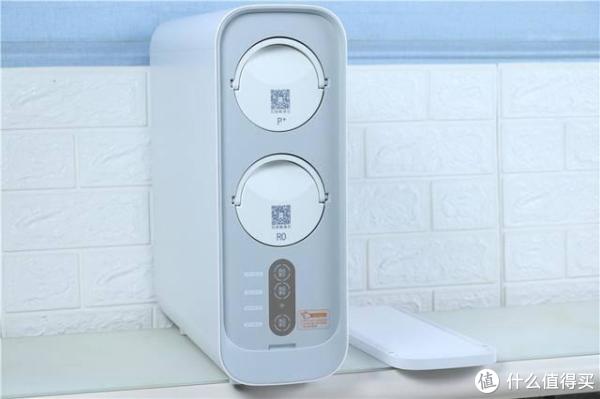 打开面板,便可以看到内部的布局了,上面是两个核心滤芯,下方则是控制面板。两个核心滤芯分别是P+复合滤芯,和RO膜滤芯。其中P+复合滤芯是由PP棉+碳棒复合材质构成,具有很强的吸附能力,能有效拦截铁锈、泥沙等大颗粒杂质,以及吸附余氯、异色异味及部分有机物。