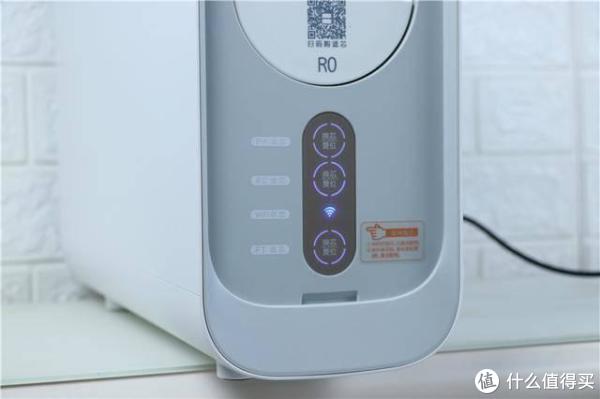 这款九阳净水器R7s关于滤芯的拆装则是采用了自动模式,需要配合下方的按键才能拆装滤芯。下方的三颗按键分别对应了对应P+滤芯、RO滤芯、FT滤芯的换芯复位,还有一个Wi-Fi指示灯用于显示网络的连接状态。