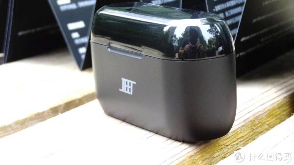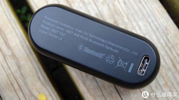 电池盒外部使用了磨砂材质,电池仓盖开口处设计有JEET的LOGO,背面设置了一个用于耳机和外部设备进行蓝牙配对的圆形按键,此次将Type-C的充电口设计在了底部,充电时候需要将电池仓躺着放置才可以。