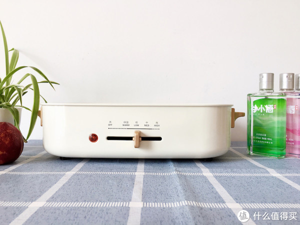 SURE家用多功能锅的锅体采用0.08MM超厚压铸铝一体成型,从外观上来看,这款胡椒白色的SURE多功能锅是简洁现代风,仅有一个开关控制温度和一个指示灯显示状态。它的温度有高中低和保温四种状态,通过左右滑动即可调节,非常灵活和易操作。