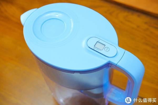 壶盖后端为滤芯寿命计时器,我本以为是通过某个金属接头导电来计算滤芯寿命,然而找了半天终于发现,它仅仅是一个独立的定时器而已。长按即可点亮,共计四个格,每个格代表两周。一个滤芯更换周期为 2 个月。参考下图: