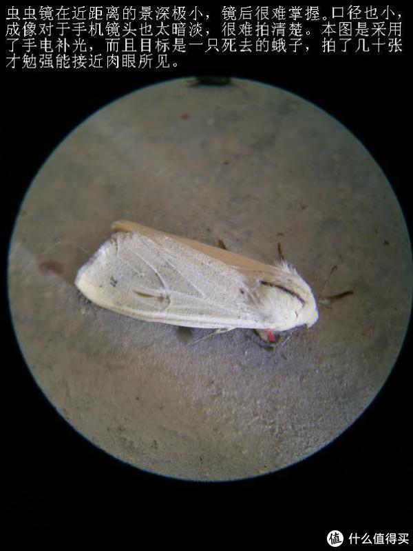 下图是在最近对焦距离观测的一只蛾子尸体。此镜近距离景深很浅,需要频繁调焦,这或许是它调焦轮手感被设计得很松的原因。十多米外,景深变为极大,对准五十米调一次焦之后,十多米到无穷远似可不必再调焦,考虑到其口径小,倍率低,这种大景深是很正常的。当然,为了放松眼睛,精细调焦也是可以的。