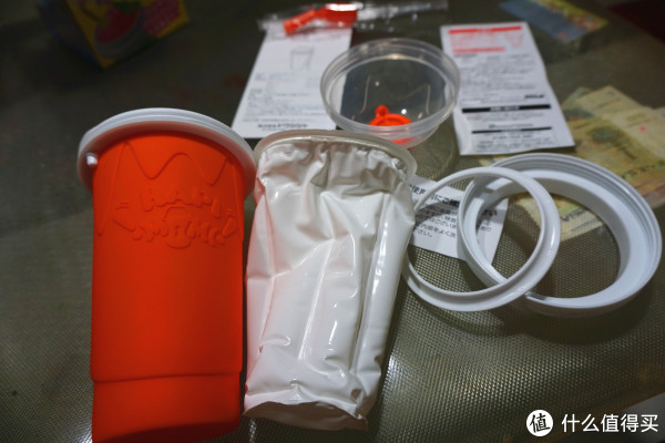 组件拆解,杯套、冷冻袋、盖子的框框、上盖等等。