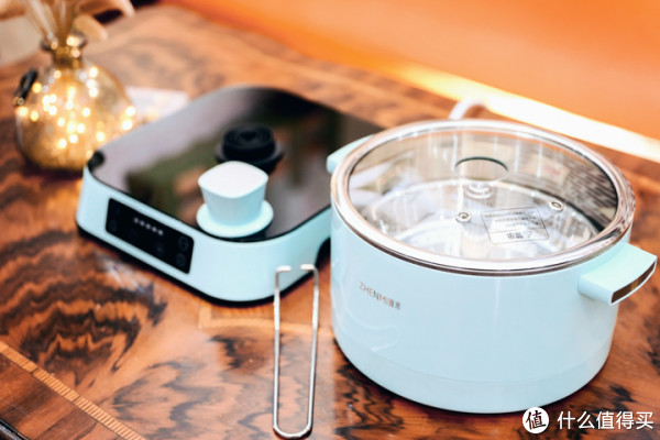臻米升降电火锅有红、青、蓝三种配色,个人最喜欢的是青色。